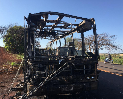 Ônibus com trabalhadores rurais pega fogo na BR 369 em Bandeirantes