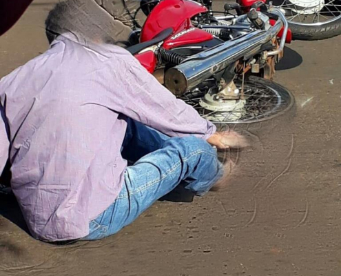 Colisão auto x moto na Vila Lordane deixa idoso com graves ferimentos no pé