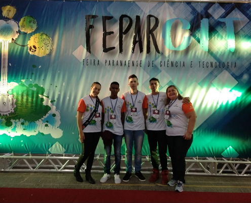 Alunos do Curso Técnico em Alimentos do CEEP de Bandeirantes na FEPARCIT em Cascavel com chips de inhame e espinafre