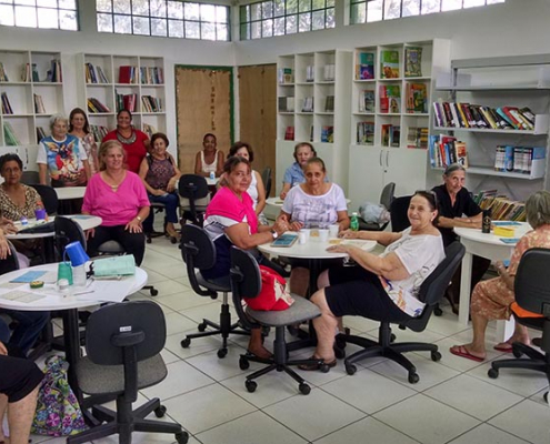 Um grupo de senhoras da melhor idade a anos se reúnem todas…