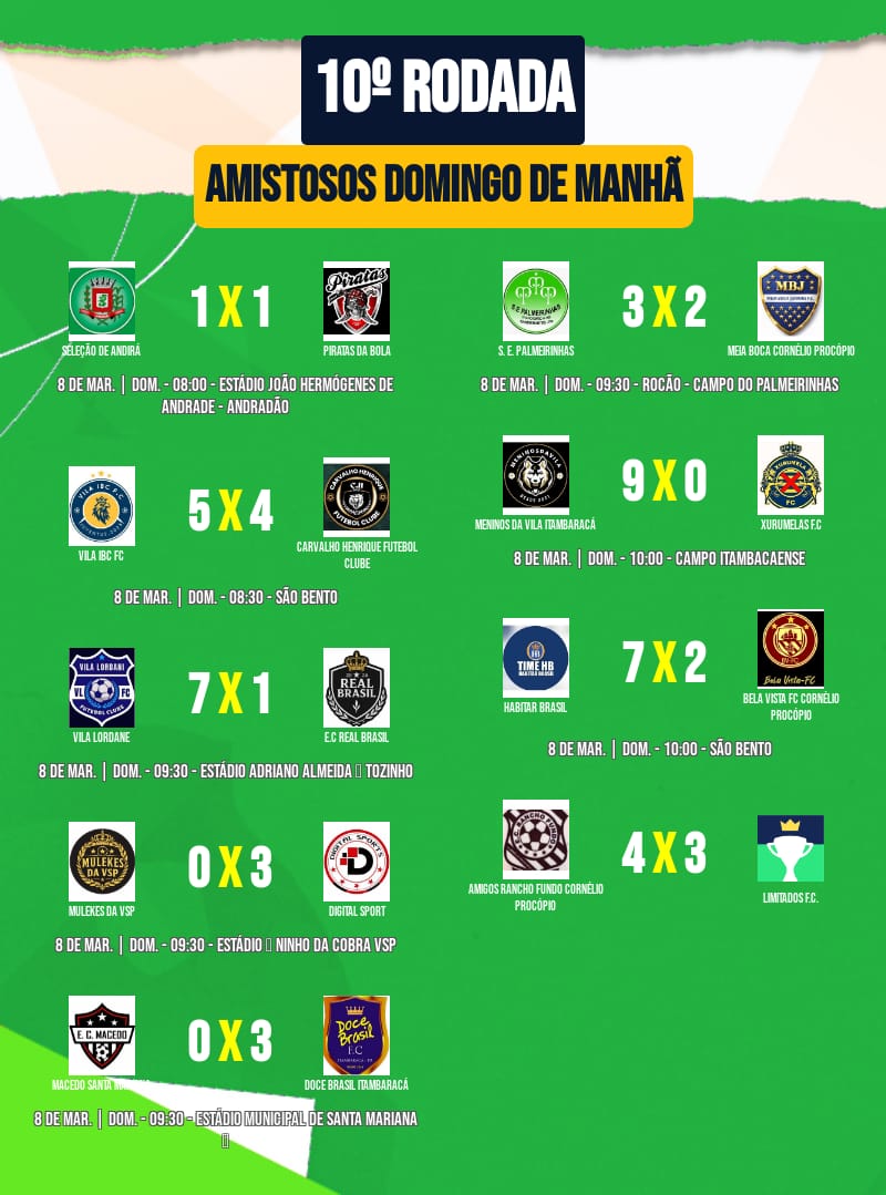 O fim de semana foi de muita emoção para o esporte amador em Bandeirantes e cidades da região. Diversas partidas foram realizadas e os torcedores puderam acompanhar jogos disputados, com muitos gols e grande participação das equipes locais.