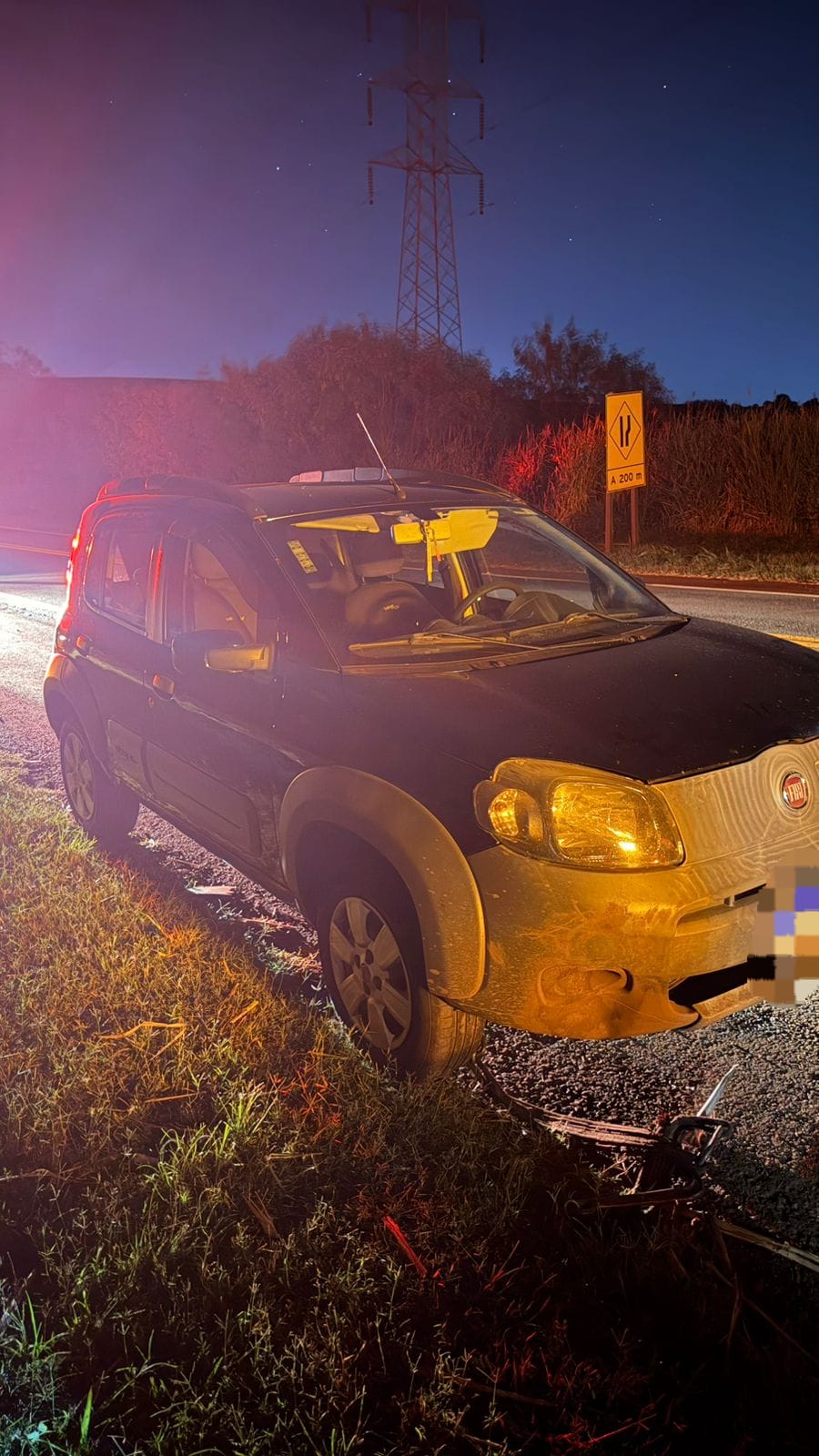 De acordo com informações da Polícia Militar Rodoviária, um veículo Fiat/Uno Way, com placas de Andirá (PR), trafegava no sentido decrescente da via quando acabou se envolvendo em um acidente com um semovente (javali) que estava sobre a pista.