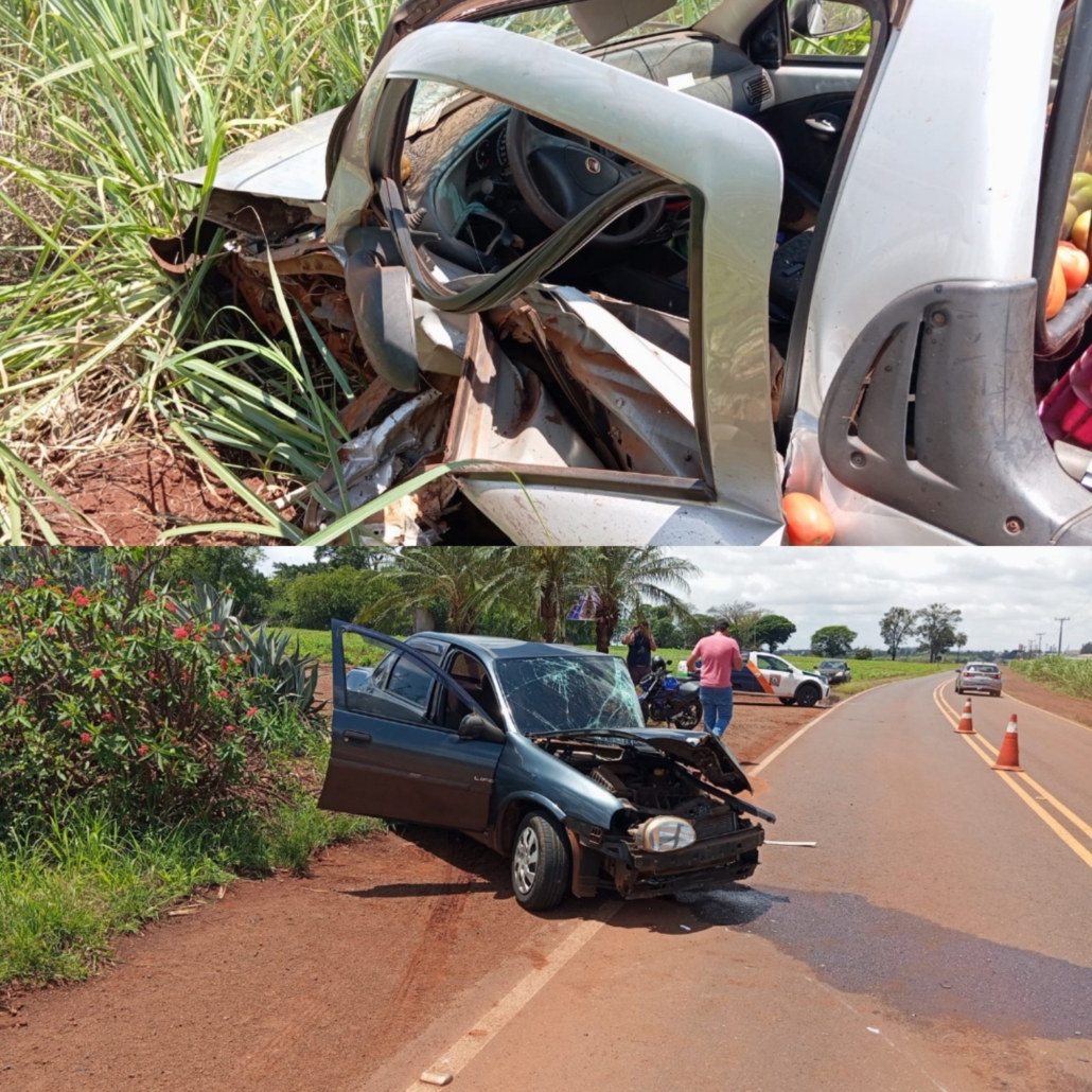 Um grave acidente foi registrado na manhã desta terça-feira (4) na PR-436, rodovia que liga Bandeirantes a Itambaracá. A colisão envolvendo um Fiat Strada, de cor prata, e um Chevrolet Corsa Classic, de cor chumbo, aconteceu em uma curva, próximo a uma granja, por motivos que ainda estão sendo apurados pela Polícia Rodoviária Estadual. O cabo Sartori, do Corpo de Bombeiros de Bandeirantes, participou hoje do Jornal Operação Cidade, Segundo ele, a colisão frontal envolveu um Fiat Strada, que seguia sentido Bandeirantes, e um Chevrolet Corsa Classic, que vinha em direção a Itambaracá. O impacto foi forte e deixou três pessoas feridas: duas que estavam no Corsa e o motorista da Strada.