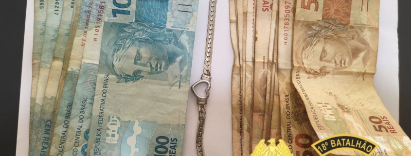 Durante a revista pessoal, foram encontrados R$ 1.850,00 em dinheiro e uma pulseira feminina de prata, reconhecida pela vítima como sendo de sua esposa.