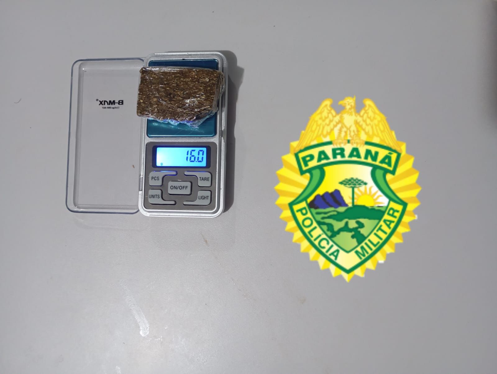 Durante a abordagem, os policiais constataram no interior do automóvel odor característico de substância entorpecente. Em revista veicular, foi localizada uma porção de substância análoga à maconha, acondicionada em plástico, com peso aproximado de 16 gramas.