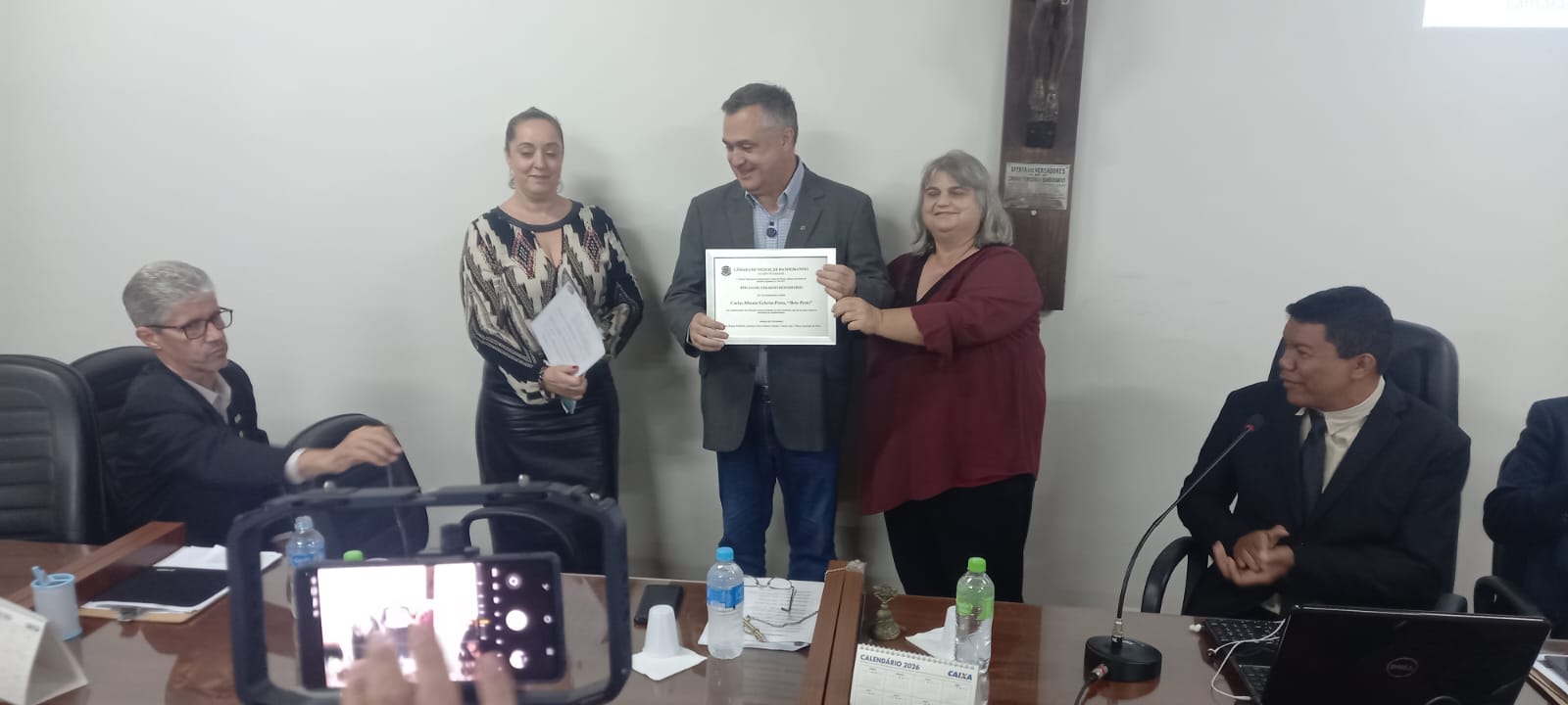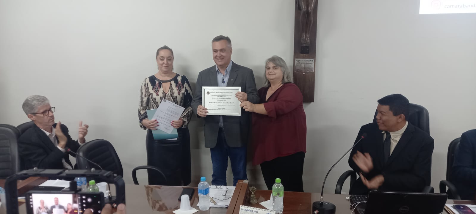 A Câmara Municipal de Bandeirantes realizou, na noite da última quarta-feira, 12 de março, uma sessão solene para a entrega do título de Cidadão Honorário do município ao secretário de Estado da Saúde do Paraná, Carlos Alberto Gebrim Preto, o Beto Preto.