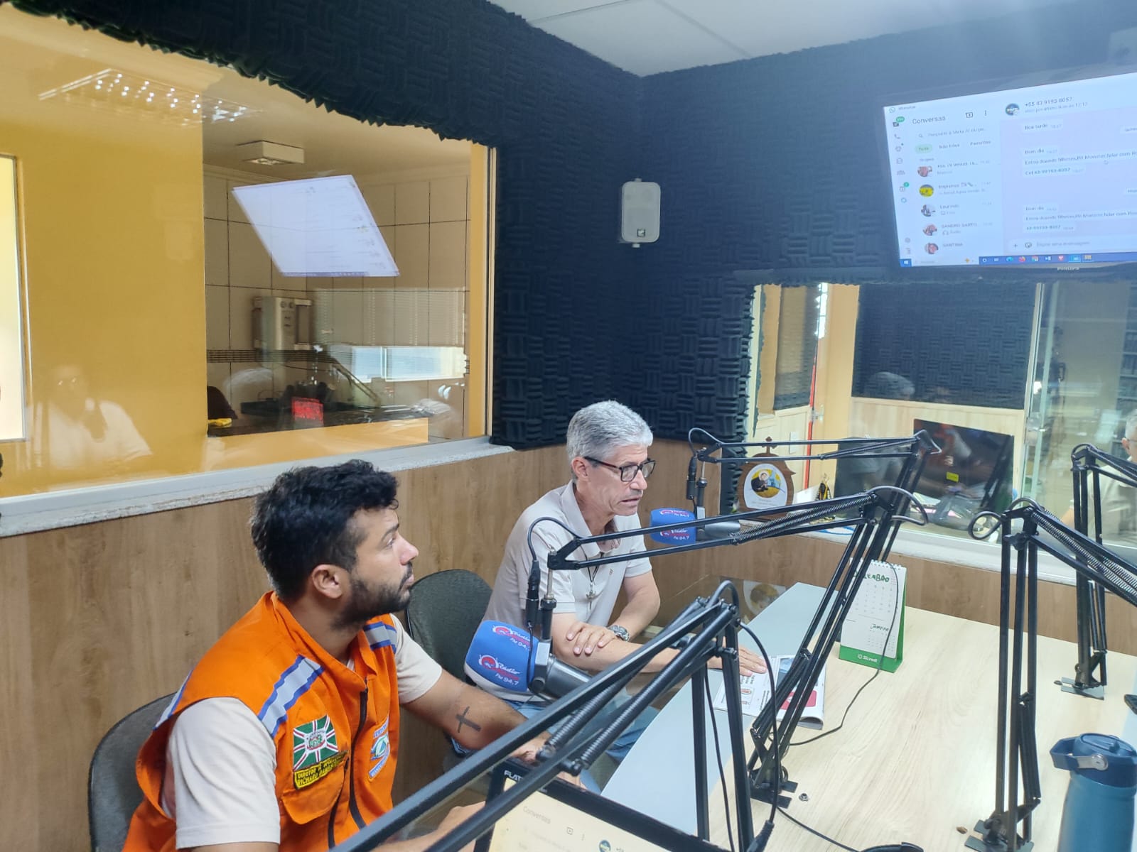 O tenente Thiago Justino, o prefeito Jaelson Matta e o coordenador da Defesa Civil de Bandeirantes, Richard Damasceno, participaram da 2ª edição do Jornal Operação Cidade desta segunda-feira, dia 15 de dezembro. Durante a entrevista, eles falaram sobre as medidas que serão adotadas diante das enchentes registradas no município nos últimos dias.