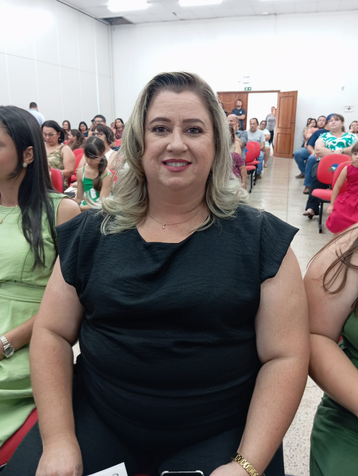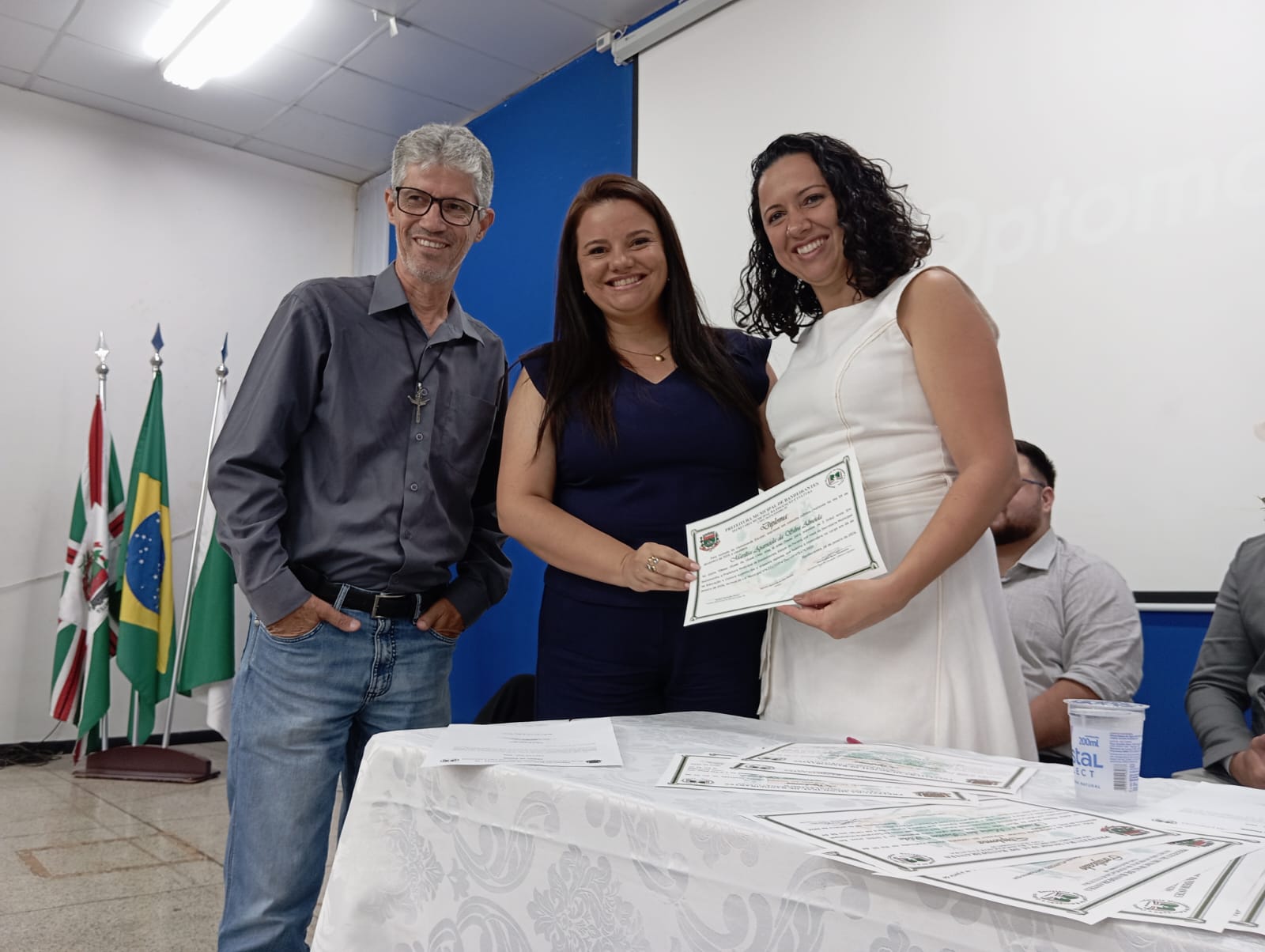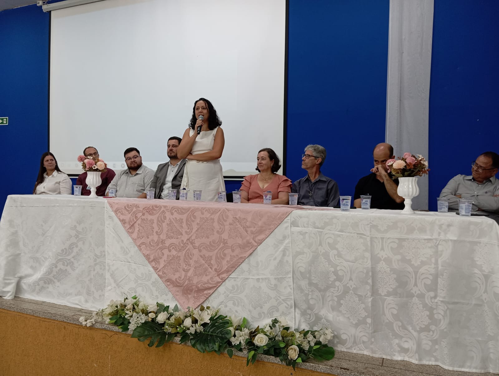Representando todas as diretoras empossadas, a professora Heleir C. Reynaldo Silvério, diretora da Escola Municipal Moacir Castanho, fez uso da palavra e destacou o compromisso com a qualidade da educação, o fortalecimento da gestão escolar e o trabalho em parceria com a comunidade