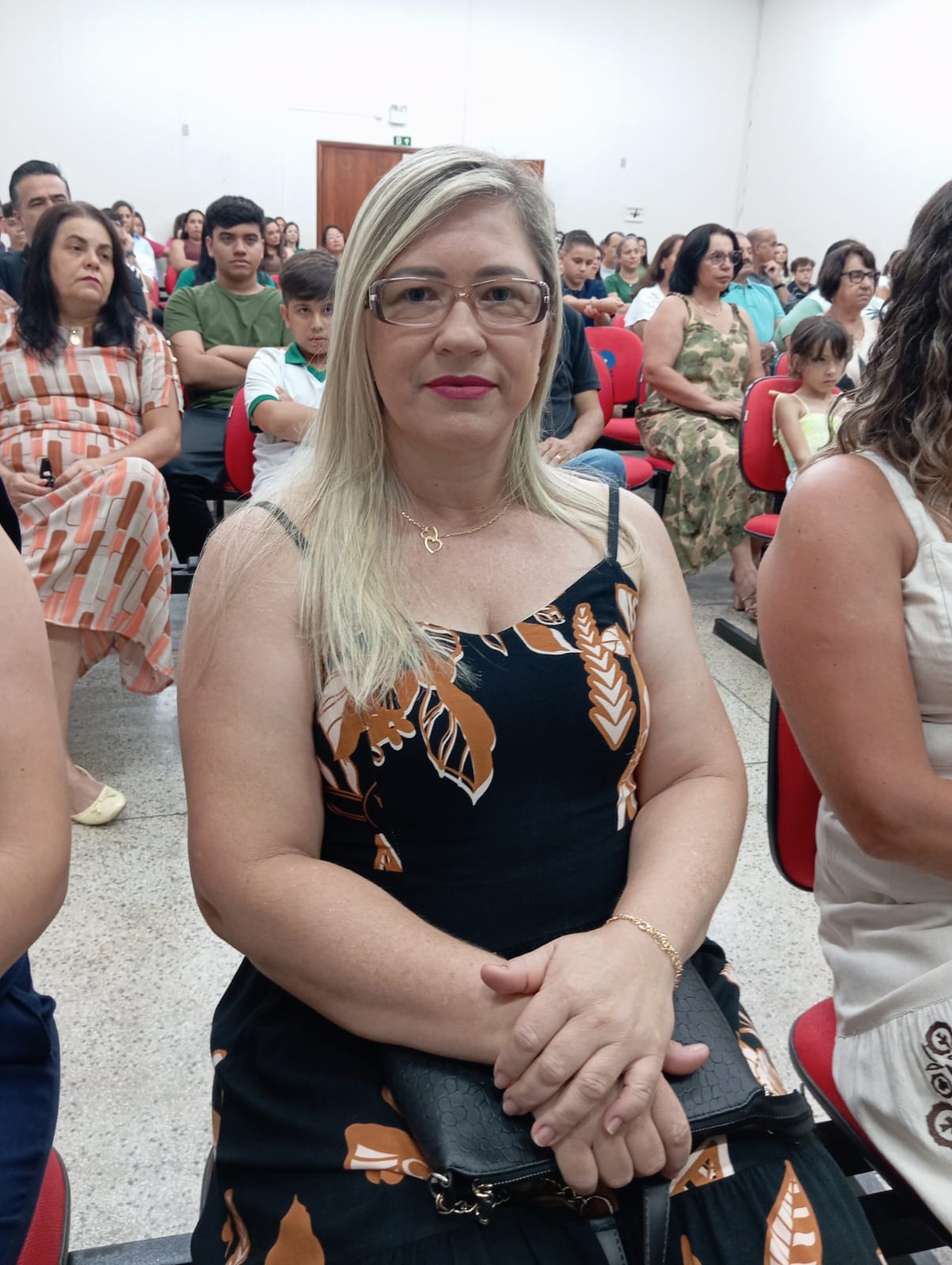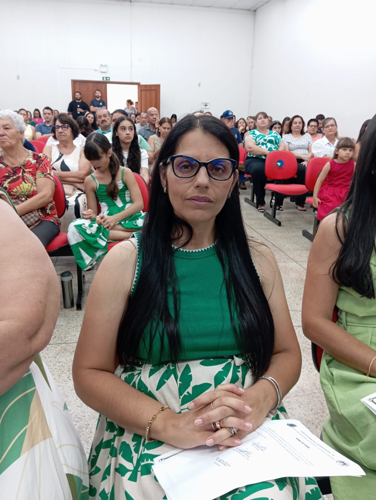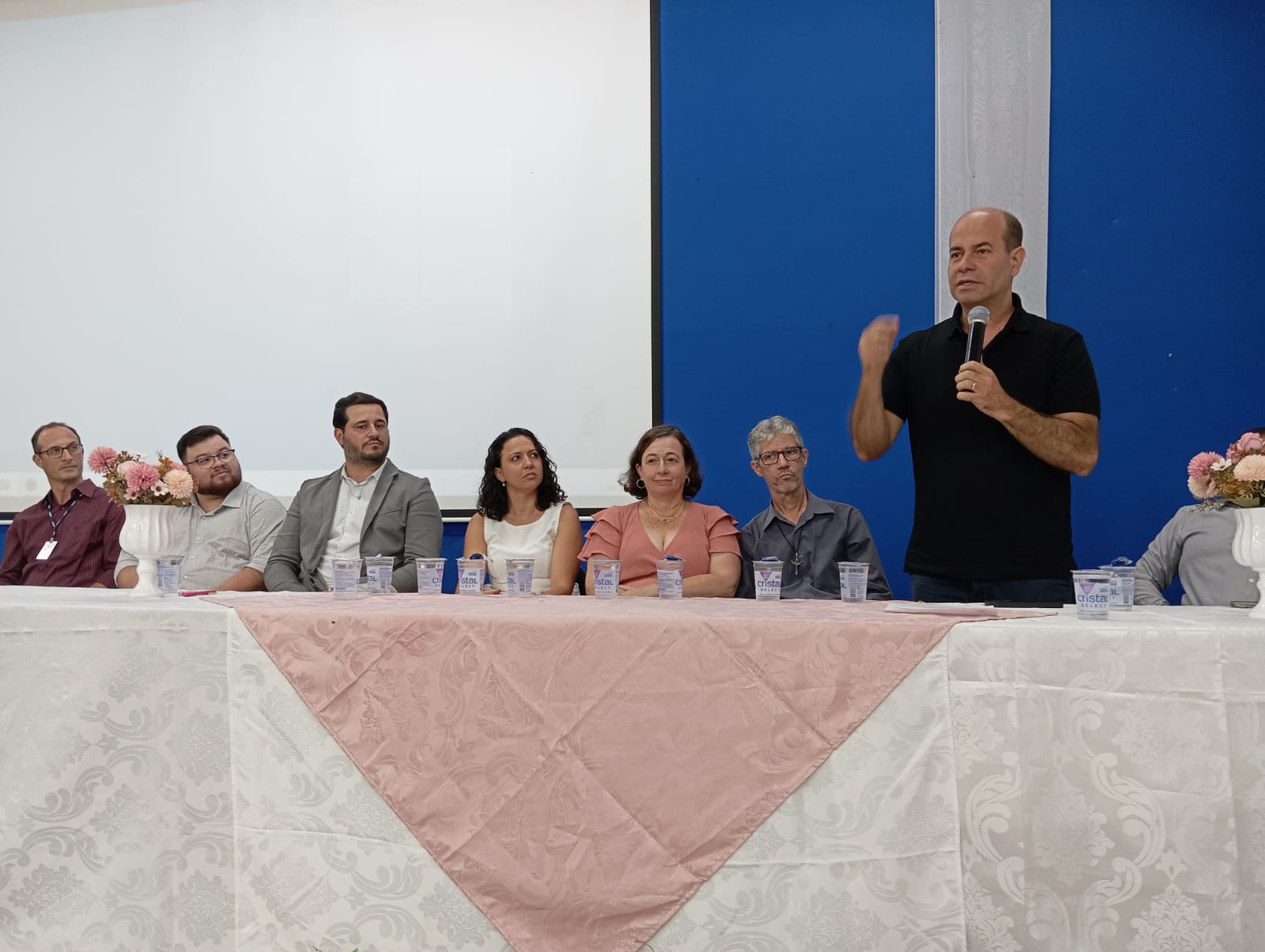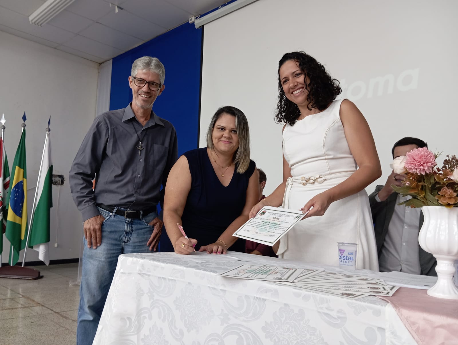 Representando todas as diretoras empossadas, a professora Heleir C. Reynaldo Silvério, diretora da Escola Municipal Moacir Castanho, fez uso da palavra e destacou o compromisso com a qualidade da educação, o fortalecimento da gestão escolar e o trabalho em parceria com a comunidade