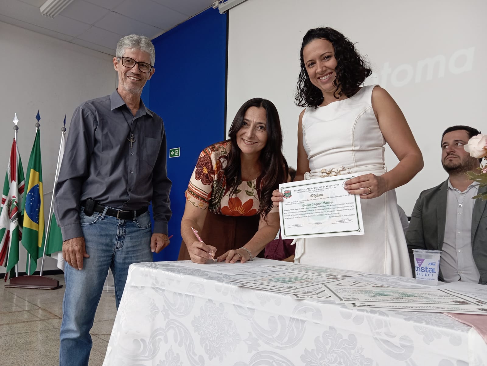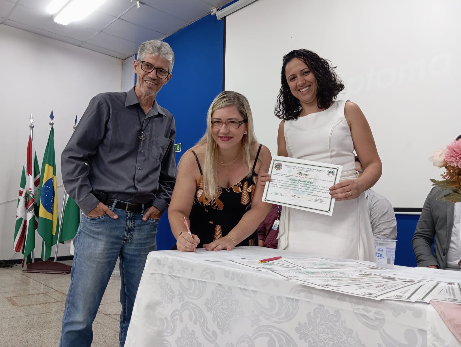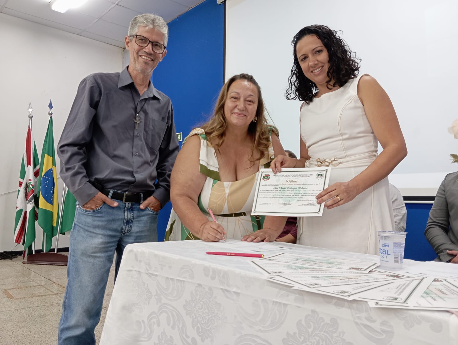 Na tarde da última terça-feira, no Auditório Thomaz Nicoletti, do campus Luiz Meneghel da Universidade Estadual do Norte do Paraná (UENP), foi realizada a cerimônia de posse das diretoras das 11 Escolas Municipais e dos 8 Centros Municipais de Educação Infantil (Cemeis) de Bandeirantes, que atuarão na gestão do triênio 2026/2028.