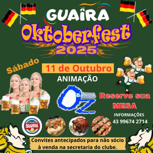 Acontece na noite deste sábado, 11 de outubro, a 25ª edição da Oktoberfest do Guaira Clube de Campo de Bandeirantes.