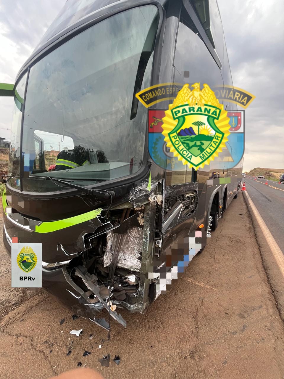 A concessionária responsável pela rodovia prestou atendimento no local. Os passageiros do ônibus não sofreram ferimentos e o veículo conseguiu seguir viagem.