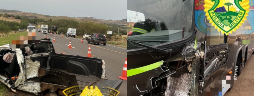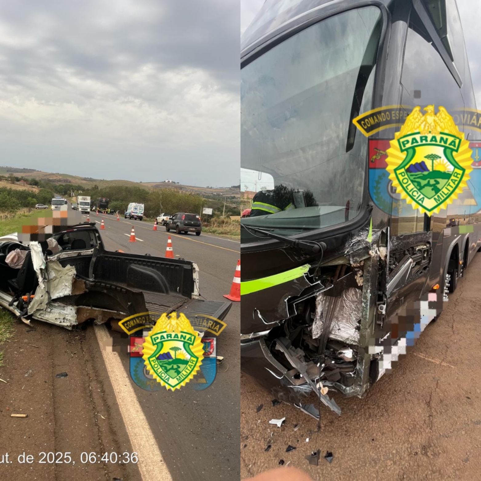 Motorista fica ferido em colisão entre Saveiro e ônibus na PR-855, em Bandeirantes
