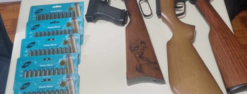 Polícia cumpre mandado de busca e apreensão e apreende munições e armas em residência