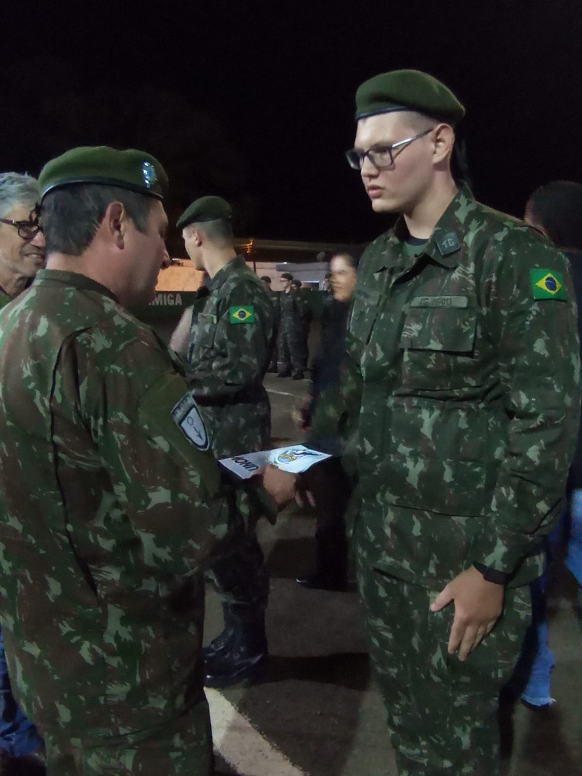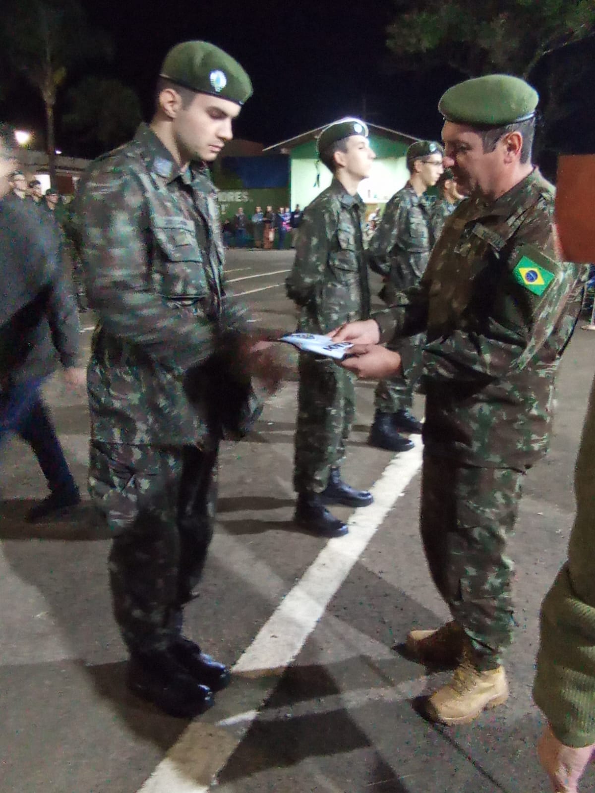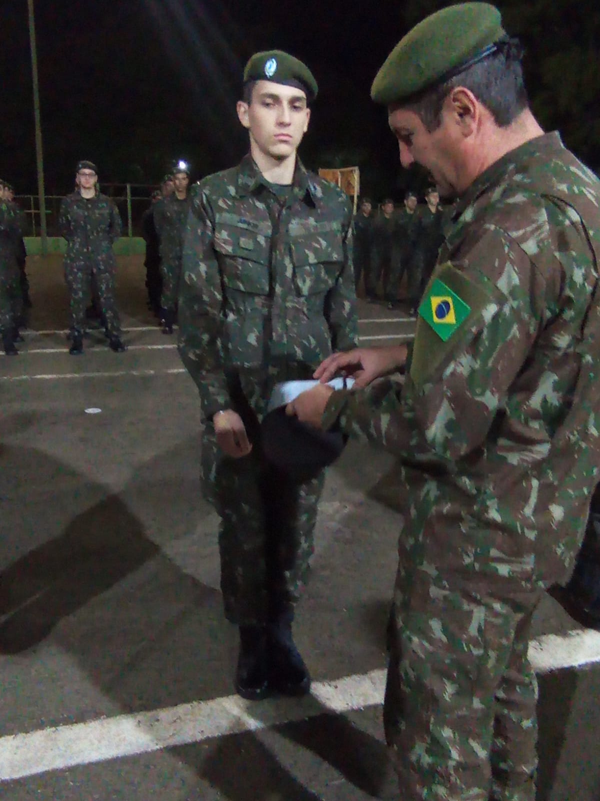 Durante a solenidade, foi realizada a entrega da boina verde-oliva aos atiradores, marcando a conclusão do Período Básico de formação militar. A boina simboliza que o atirador está apto a integrar frações de combate e representa o compromisso com os valores e deveres militares.