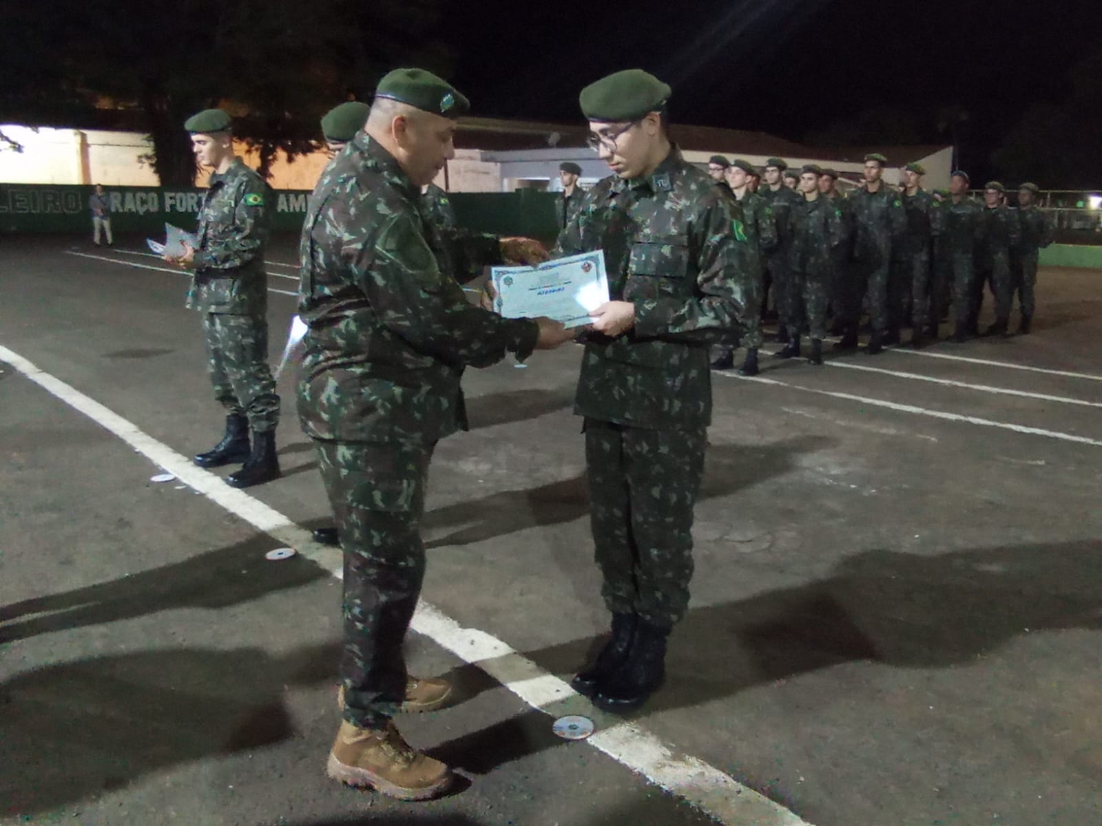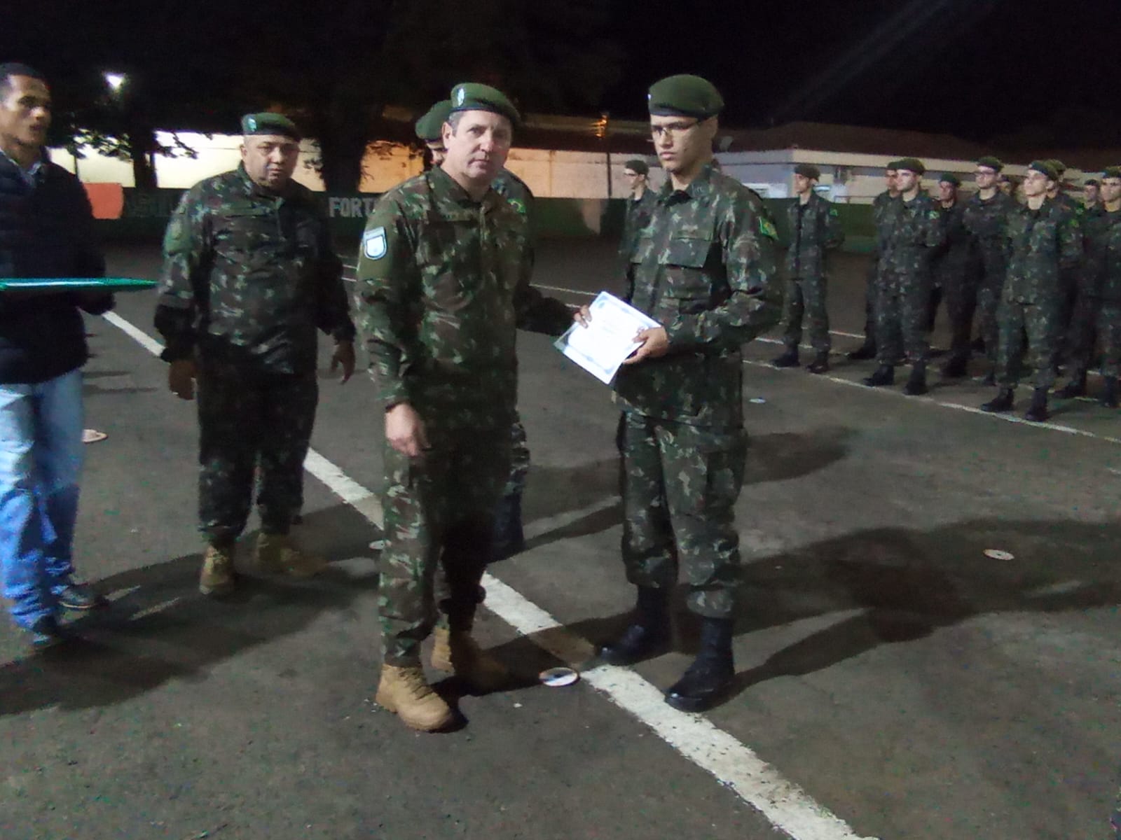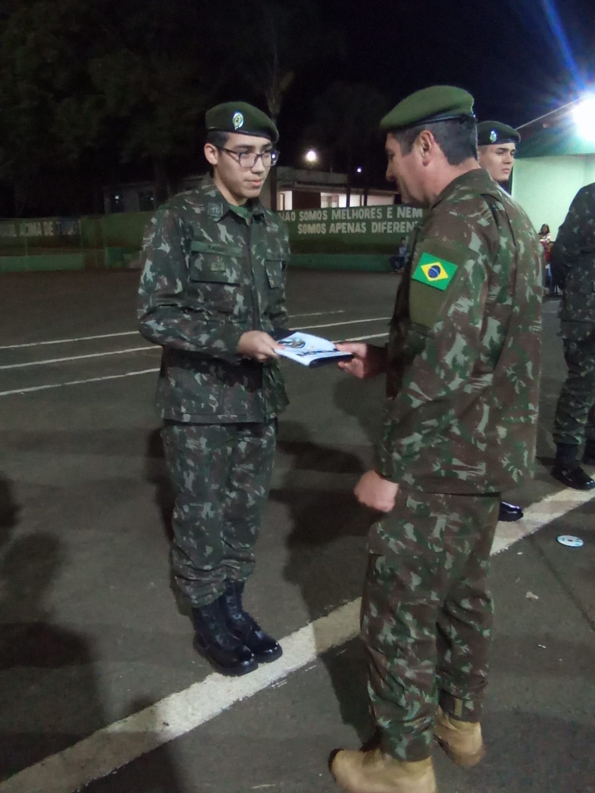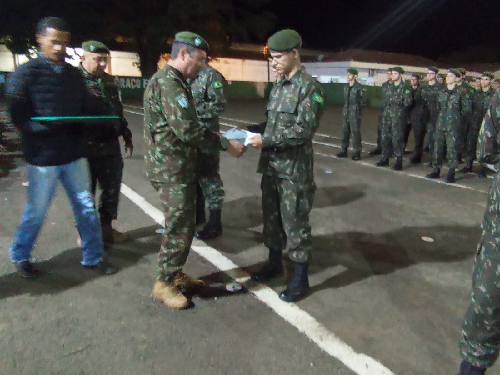 Durante a solenidade, foi realizada a entrega da boina verde-oliva aos atiradores, marcando a conclusão do Período Básico de formação militar. A boina simboliza que o atirador está apto a integrar frações de combate e representa o compromisso com os valores e deveres militares.