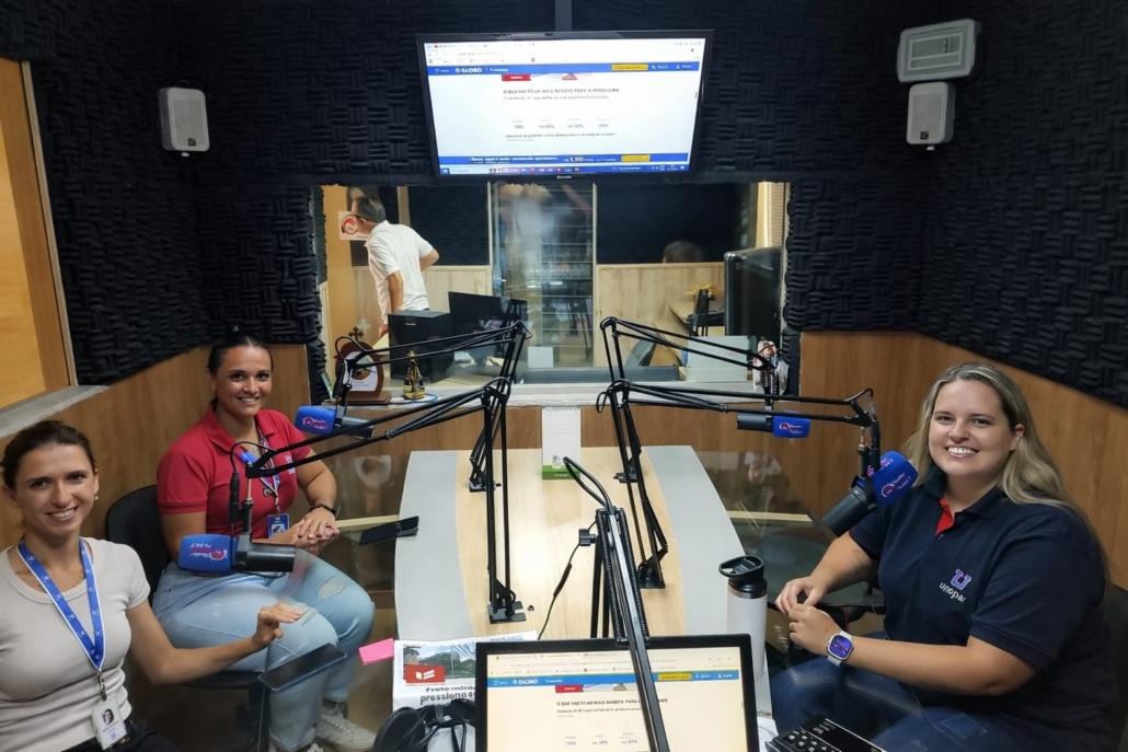 Na edição deste sábado, 17 de janeiro de 2026, do Jornal Operação Cidade, a Prof.ª Dra. Mariana Fordellone Rosa Cruz, diretora do campus da Unopar/Anhanguera de Bandeirantes, a coordenadora do curso de Psicologia, Flávia Penha Jacobsen Batista, e a coordenadora comercial, Priscilla Barussi, apresentaram as principais ações, serviços e novidades da instituição para o ano letivo de 2026.
