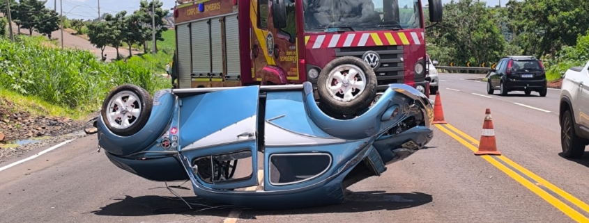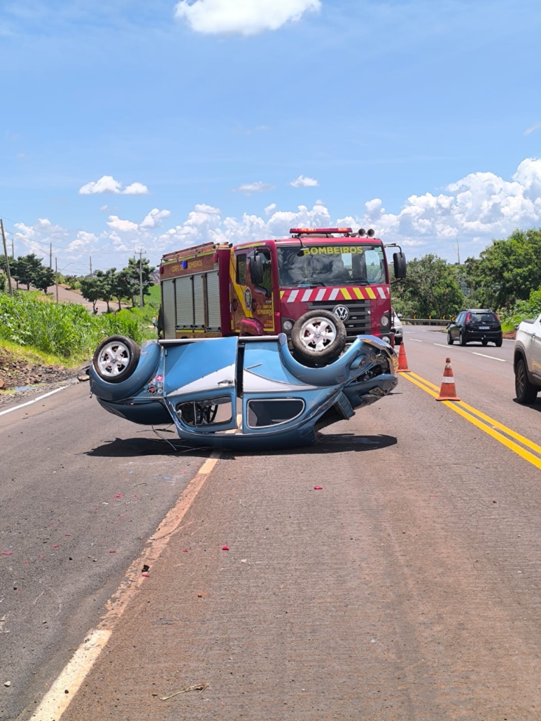 De acordo com as informações repassadas pelas equipes de atendimento, a solicitação foi recebida por volta das 11h20. No local, foi constatado que um veículo Volkswagen Fusca havia capotado várias vezes após sair da pista e colidir contra um barranco, parando com as quatro rodas para cima.