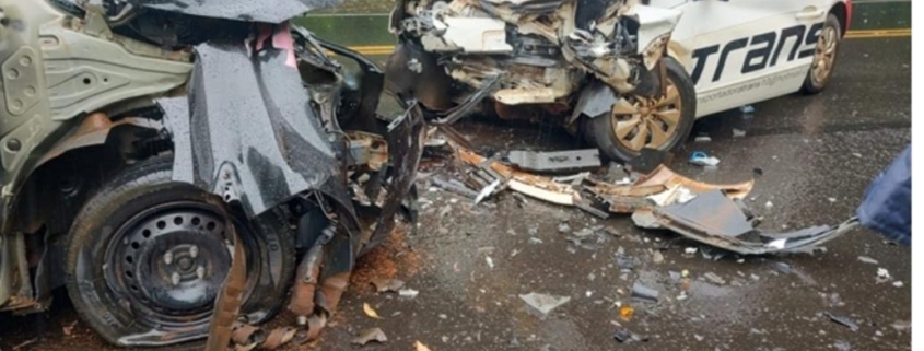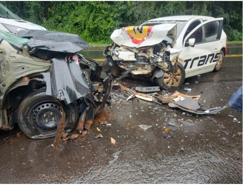 A colisão envolveu um GM Prisma com placas de Cambará e um VW Gol. Ao todo, quatro pessoas ficaram feridas, entre elas uma criança.
