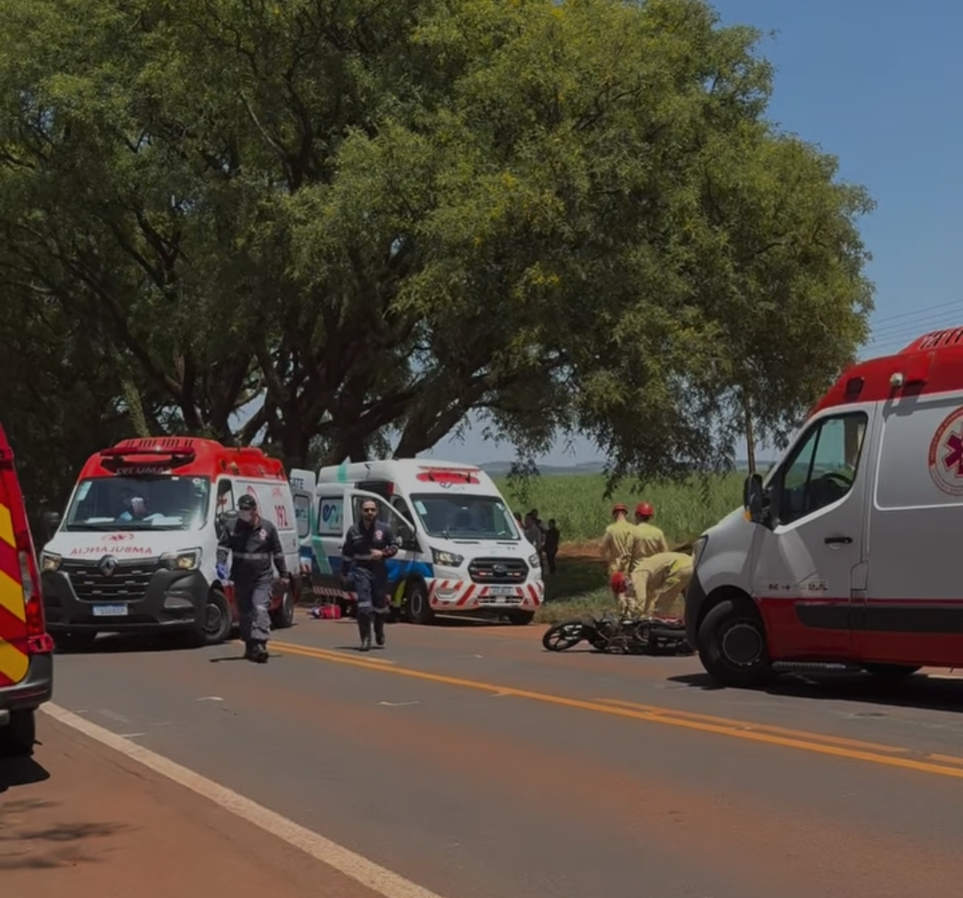 Equipes do Corpo de Bombeiros, EPR, SAMU, SAMU Aéreo e Polícia Militar seguem trabalhando na ocorrência.