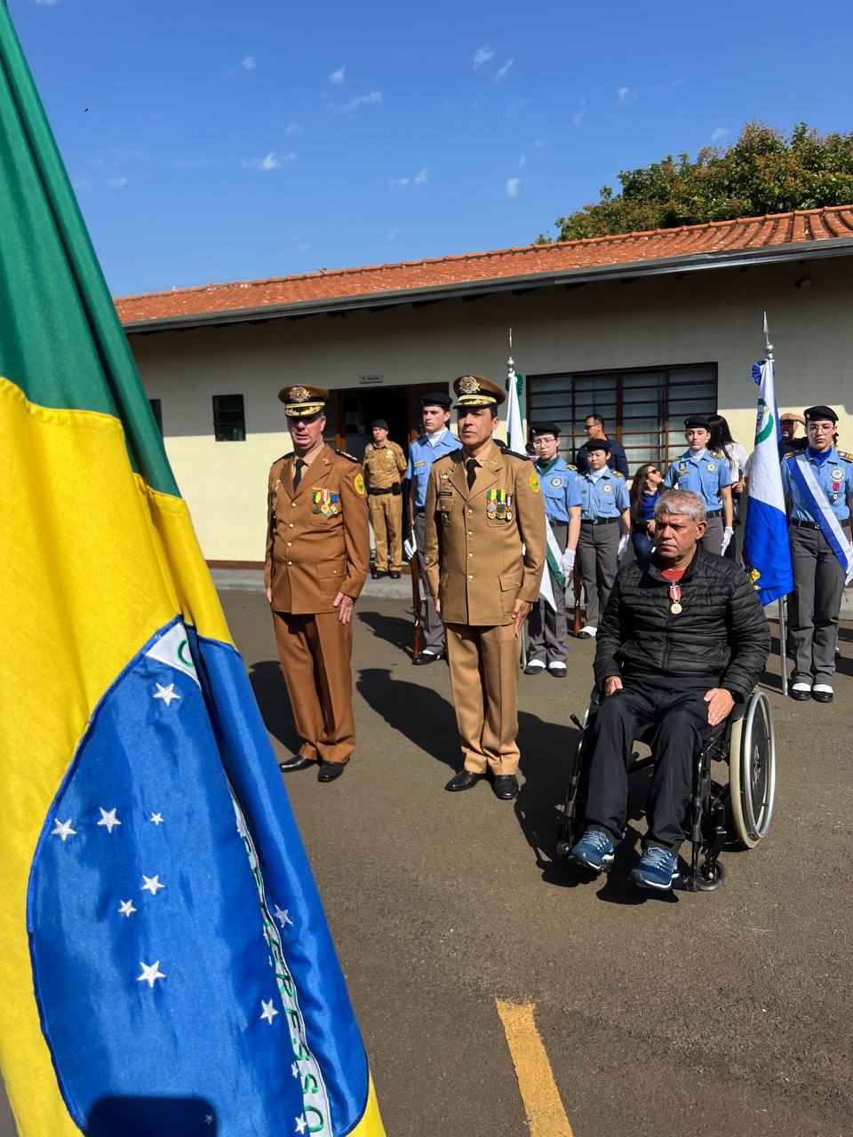 Durante a conversa, o Tenente Coronel Busnello enfatizou as significativas homenagens dedicadas à equipe do 18º BPM, assim como àqueles indivíduos que desempenharam um papel fundamental no apoio à PM.