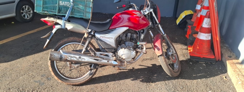 A Polícia Militar de Bandeirantes recuperou, nesta terça-feira (14), uma motocicleta roubada e prendeu o suspeito após uma perseguição. O homem havia fugido pela rodovia PR-436 depois de um assalto à mão armada em Abatiá. Ao avistar a equipe policial, ele tentou escapar por uma estrada rural, abandonou o veículo e se escondeu em uma mata, mas acabou sendo detido.